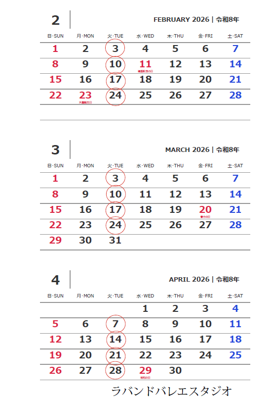 また、講師都合や発表会振付期間などで休講となる場合は、